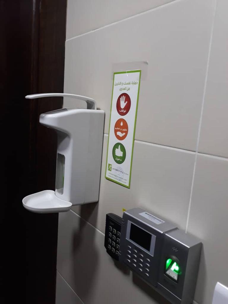 – تزويد جميع الموظفين بأجهزة التعقيم الشخصية والكمامات والقفازات الطبية.