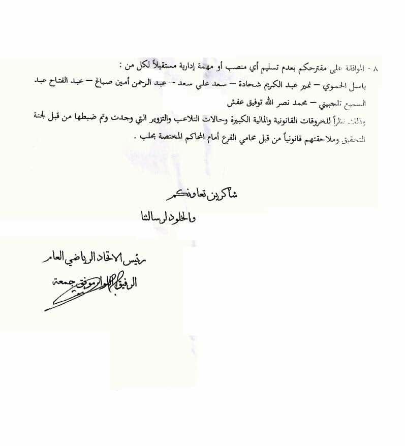 قرر المكتب التنفيذي في الاتحاد الرياضي العام بجلسته رقم / 17 / تاريخ 21 / 7 / 2020 حل مجلس إدارة نادي الاتحاد الرياضي وتشكيل لجنة مؤقتة دون ذكر أي مبرر للإقالة، الجميع فوجئ بخروج القرار بشكل مقتضب دون أي موجبات أو تبعات يمكن الوقوف عندها في ظل تغييب تام للجنة التنفيذية بحلب عن الأحداث وعدم صدور أي مقترح من قبلها وخاصة أن مجلس الإدارة الحالي منتخب بشكل ديمقراطي ولم يمض على تسلمه بضعة أشهر تخللها توقف اضطراري لمدة ثلاثة أشهر بسبب جائحة كورونا، وسمعنا سابقا بأنه لن يتم حل أي إدارة ناد أو اتحاد قبل منحه الفرصة الكاملة إلا إذا كانت هناك مبررات تستوجب الحل والإقالة، وهذا بحاجة إلى توضيح من القيادة الرياضية.