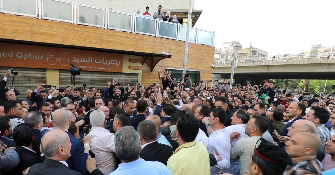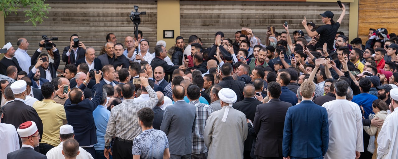 وعقب انتهاء الصلاة التفت جماهير حي الميدان الدمشقي العريق حول السيد الرئيس بشار الأسد وبادلته التهاني والتبريكات بعيد الفطر السعيد.