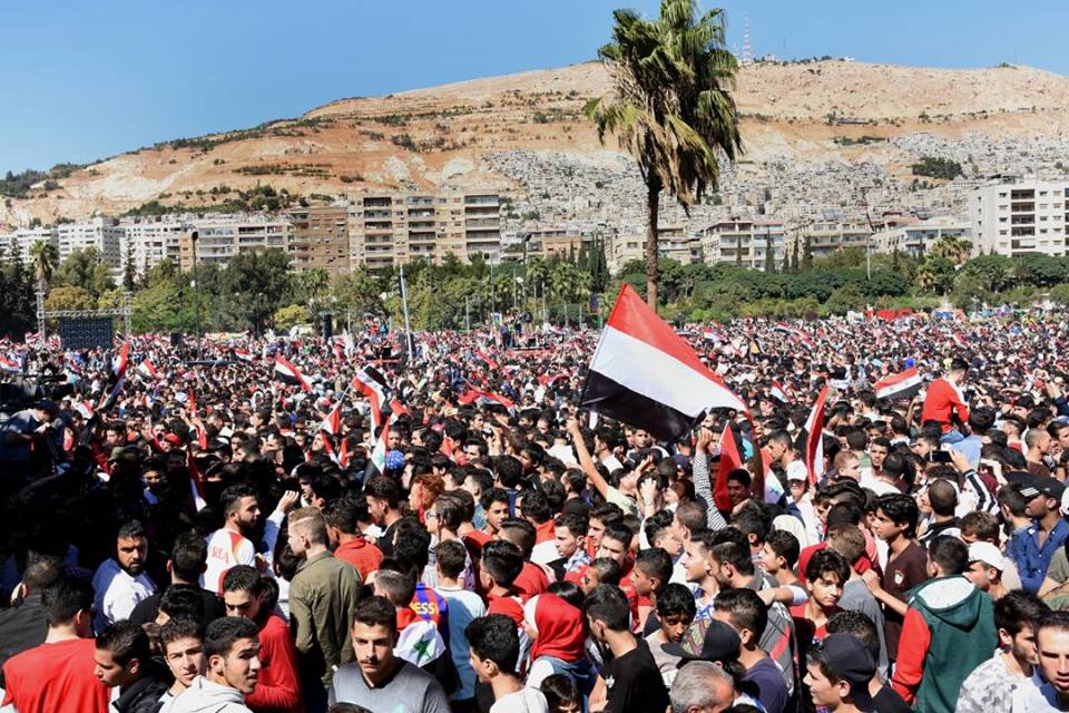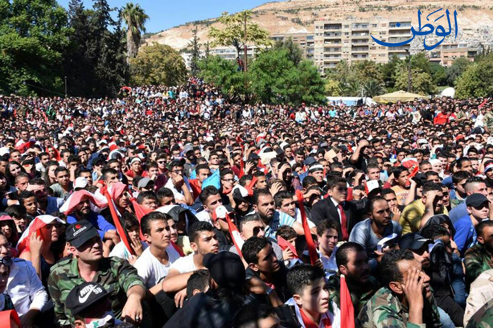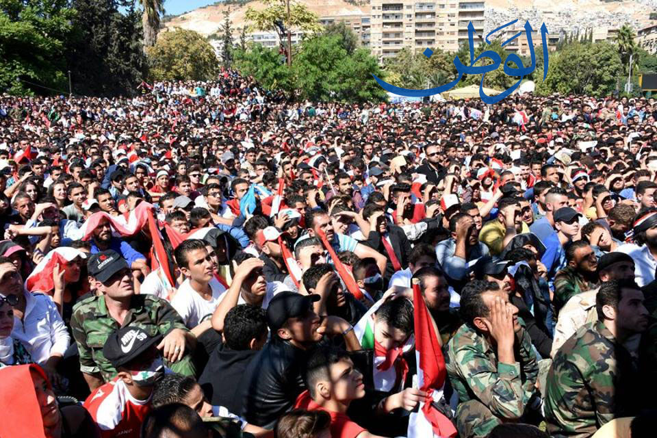 شهدت ساحات دمشق، اليوم الثلاثاء، حشوداً جماهيرية كثيفة لمتابعة مباراة المنتخب الوطني أمام منتخب أستراليا عبر شاشات عملاقة وضعت لهذه الغاية.