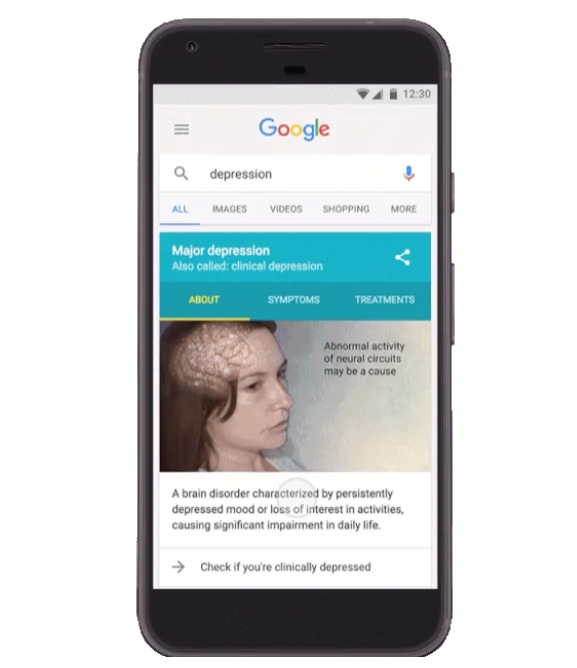 تقدم غوغل خدمة جديدة للمستخدمين في الولايات المتحدة ممن يبحثون عن “الاكتئاب” على هواتفهم المحمولة، تتيح إجراء اختبار لتحديد ما إذا كانوا يعانون منه.